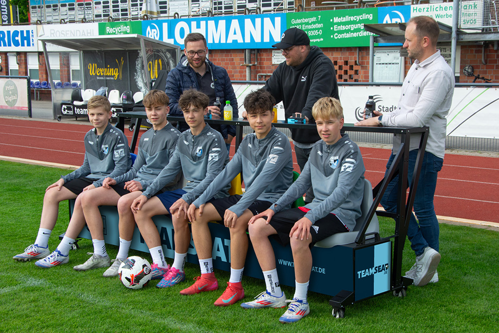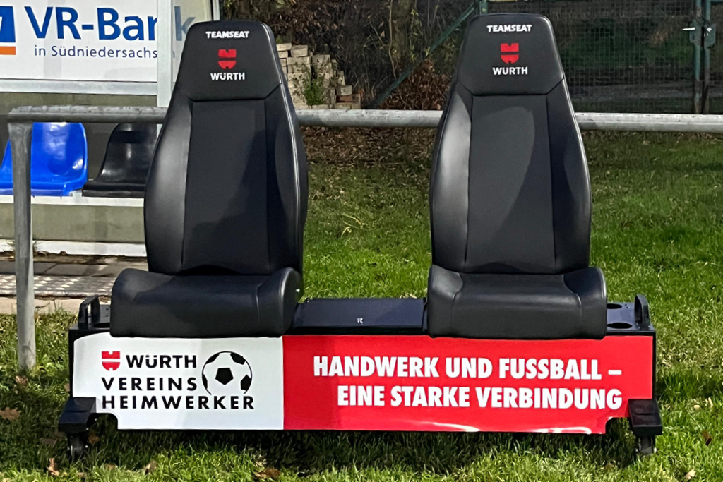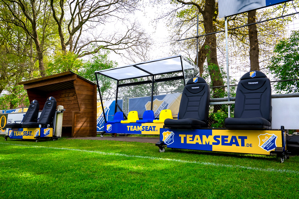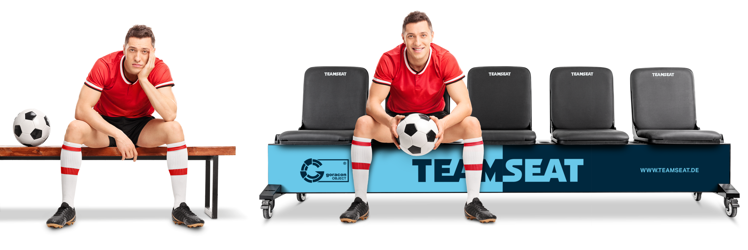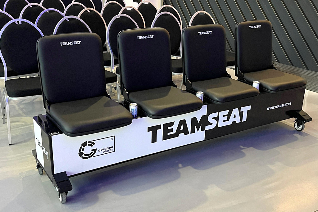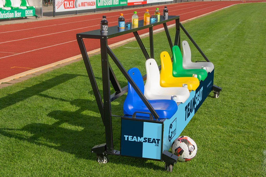 Der TEAMSEAT ist eine mobile Sitzbank in den individuellen Vereins-Farben und sorgt für besten Komfort am Spielfeldrand. Egal in welcher Liga oder auf welchem Platz gespielt wird, der TEAMSEAT ist für jeden Verein!