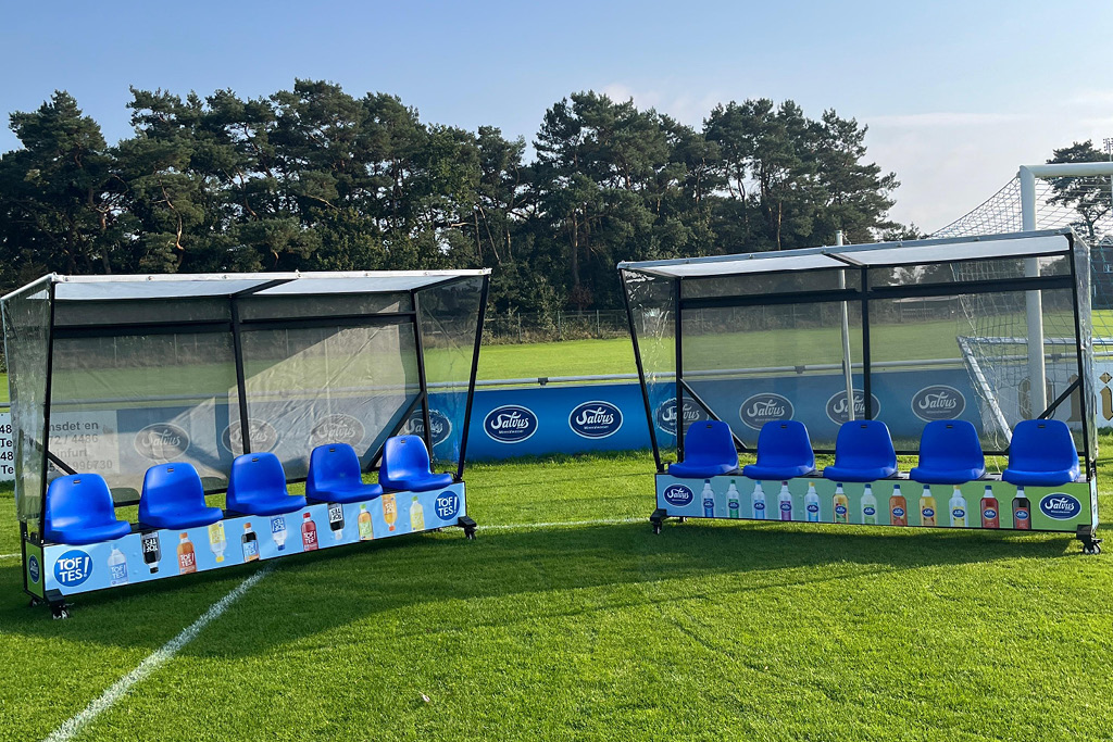 Die mobile Tribüne geht jeden Weg mit und macht sich nach dem Spiel auch vor dem Vereinsheim gut. Vier Werbeflächen rund um den TEAMSEAT bieten Euren Sponsoren die Möglichkeit den Verein zu unterstützen und sich dabei präsent in Szene zu setzen. Mit Magnetfolien als Werbeträger kann der TEAMSEAT flexibel und individuell nach Euren und den Wünschen Eurer Sponsoren gestaltet werden.
